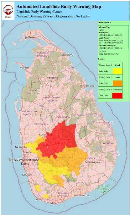 Landslides were concentrated in the central and inland highlands, including Badulla, Kandy, and Nuwara Eliya, causing heavy casualties. Some areas remain isolated as major roads and bridges were buried or washed away. Basic survival conditions have deteriorated significantly due to road loss and power outages. According to the DMC's landslide early warning report released on December 8, the Badulla region (where KAFHI projects are located) is classified as a Level 2 (High Risk) area out of 3 levels, meaning the possibility of additional landslides persists.