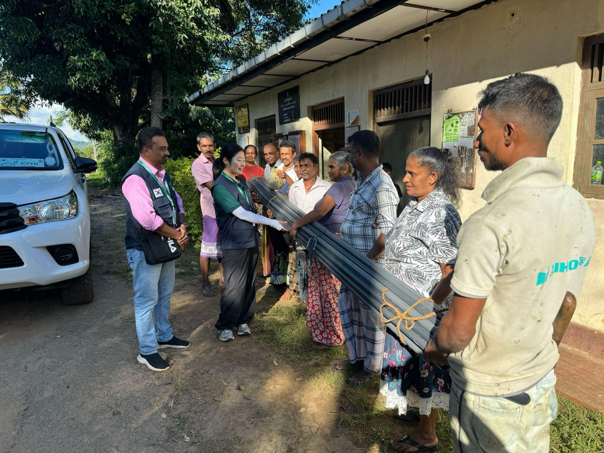 In response to requests from the Badulla local government and the needs of local residents, KAFHI has provided emergency packages including food and water, along with hygiene kits, to affected households. Furthermore, KAFHI has completed support for clearing landslide debris and securing access roads by providing emergency recovery equipment, such as chainsaws and fuel for heavy machinery.